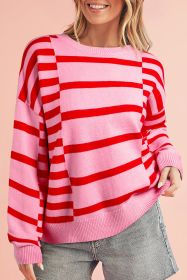 Bonbon Color Block Round Neck Loose Sweater (size: (US 12-14)L)