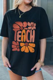 Black TEACH Crew Neck Casual T Shirt (size: (US 4-6)S)