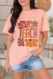 Pink TEACH Crew Neck Casual T Shirt (size: (US 16-18)XL)