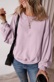 White Waffle Bishop Sleeve Split Oversized Sweatshirt (size: (US 20-22)2XL)