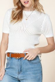 White Hollow Out Crewneck Short Sleeve Knitted Top (size: (US 12-14)L)