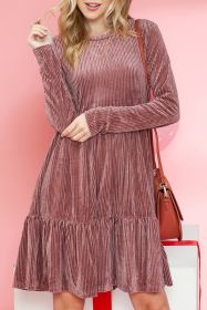 Rose Red Solid Color Flounce Sleeve Frill Tiered Dress (size: (US 8-10)M)