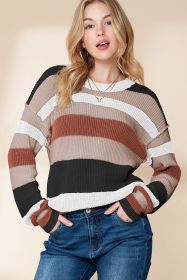 Taupe Striped Color Block Crewneck Knitted Sweater (size: (US 4-6)S)