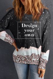 Blank Sweatshirt - Black Leopard Print Distressed Raglan Sleeve Sweatshirt Customized (size: (US 8-10)M)