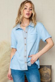 Mist Blue Colorblock Ruffled Sleeve Frill V Neck Blouse (size: (US 8-10)M)