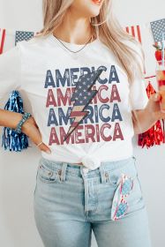 White American Flag Strip & Star Lighting Graphic Tee (size: (US 8-10)M)