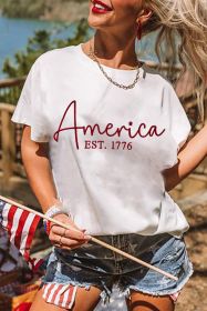 White America Letter Graphic Crew Neck T Shirts (size: (US 4-6)S)