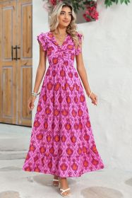 Strawberry Pink Abstract Print Pleated Flounce Sleeve Maxi Dress (size: (US 16-18)XL)