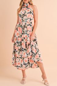 Black Knotted Halter Floral Print Ruffle Tiered Maxi Dress (size: (US 8-10)M)