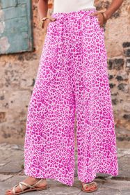 Bright Pink Boho Leopard Print Wide Leg Pants (size: (US 16-18)XL)
