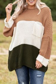 Khaki Color Block Tiered Knit Plus Size Sweater (size: (US 18-20)2X)