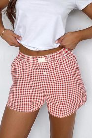 Rose Checkered Drawstring Elastic Waist Casual Shorts (size: (US 4-6)S)