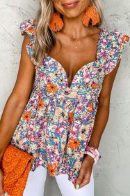 Multicolor Floral Print Ruffle Sleeveless Smocked Blouse (size: (US 16-18)XL)