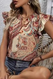 Multicolor Boho Floral Print Ruffle Sleeveless Blouse (size: (US 16-18)XL)