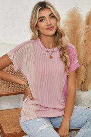 Pink Crinkle Rib Textured Colorblock Round Neck T Shirt (size: (US 12-14)L)