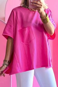 Bright Pink Patched Pocket Exposed Seam Oversized T Shirt (size: (US 12-14)L)
