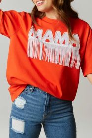 Orange Beaded MAMA Fringe Lettering Oversized T Shirt (size: (US 16-18)XL)