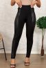 Black Leather Panel Splicing High Waist Leggings