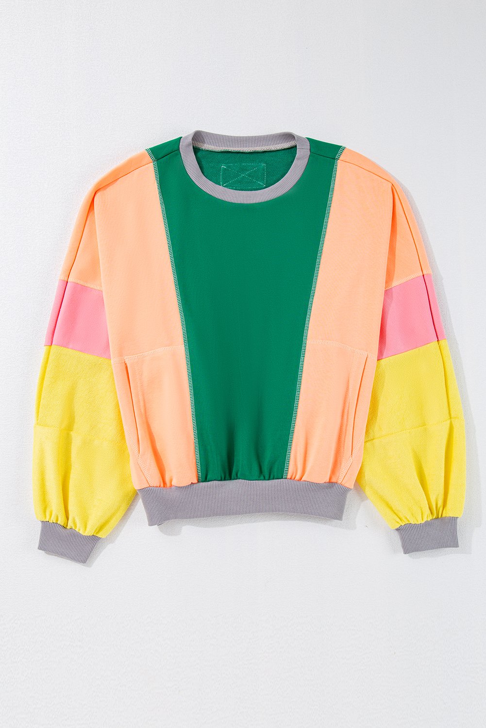 Effortlessly blend style and comfort with this top, perfect for casual outings and relaxed days. The unique color combination and patchwork design add a trendy touch to your wardrobe, making a statement wherever you go. Enjoy the relaxed fit and drop shoulder sleeves, ensuring a comfortable and chic look that is easy to pair with any bottoms. Crafted with quality materials, this top is durable and versatile, suitable for various occasions and seasons. Elevate your boutique collection with this stylish top, a must-have item for fashion-forward customers looking for wholesale options.