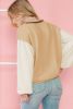 Home > Smoke Gray Crinkled Sleeve Patchwork Ribbed Pullover Top