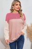 Pink Color Block Ribbed Loose Long Sleeve Top