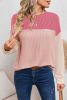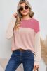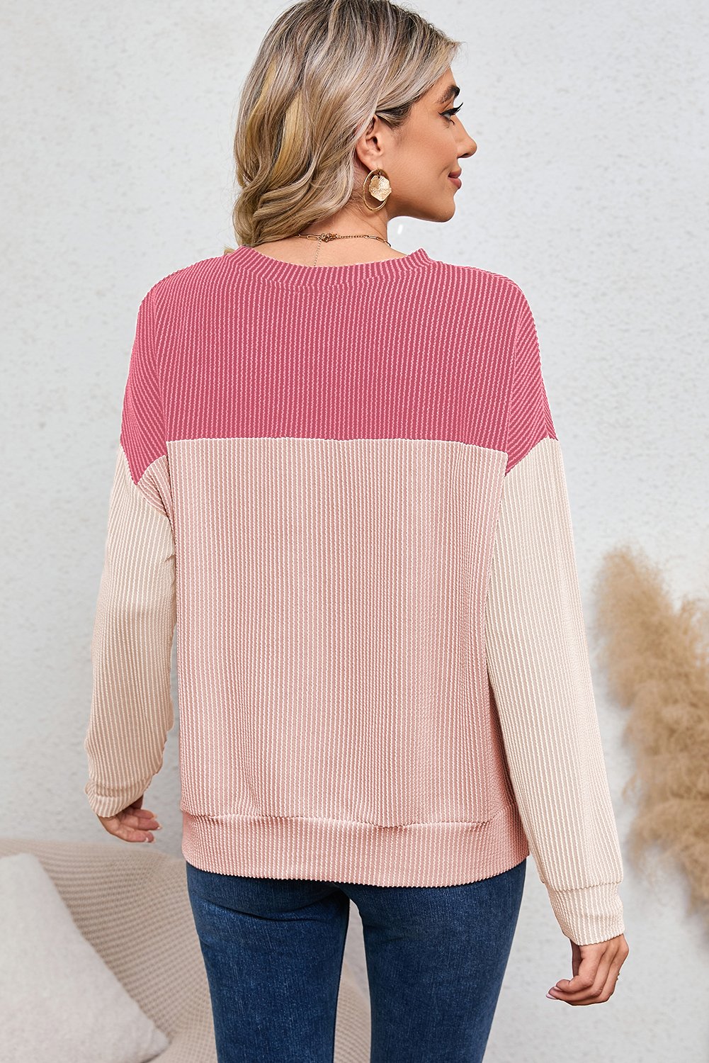 Pink Color Block Ribbed Loose Long Sleeve Top