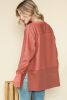Home > Mineral Red Waffle Knit Patchwork Exposed Seam Long Sleeve Top