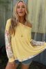 Home > Yellow Floral Patchwork Waffle Knit Babydoll Blouse