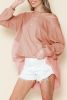 Stand out in style with this top, blending casual charm with a trendy patchwork design. Enjoy the comfort of long sleeves and the unique raw hem detail that adds a touch of edginess to your look. The oversized fit offers a relaxed and chic silhouette perfect for any day-to-night ensemble. Embrace the vibrant orange hue that adds a pop of color to your wardrobe, making a bold fashion statement effortlessly. Elevate your retail collection with our wholesale long sleeve tops that combine fashion-forward elements with comfort and versatility.