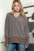 • The split V-neck adds a touch of sophistication, while the thumbhole sleeves add a trendy and modern detail.