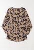 Brown Leopard Split V Neck Long Sleeve Shirt