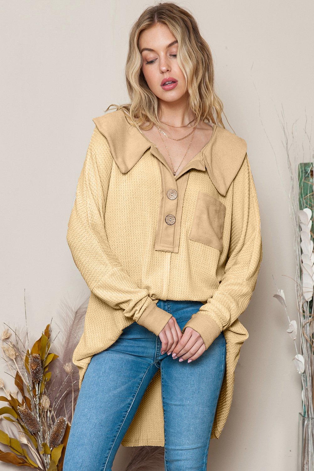 Apricot Waffle Pocket Seam Patchwork Loose Knit Top
