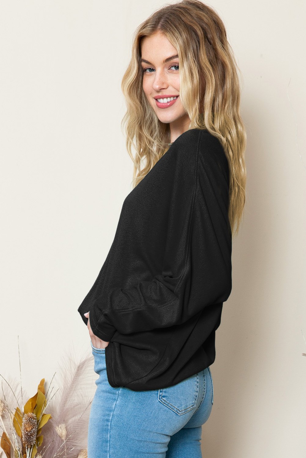Home > Black Basic Solid Color Casual Seam Long Sleeve Top