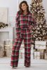 Red Christmas Checkered Pattern Loose Shirt and Pants Pajama Set