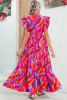 Orange Abstract Print High Waist Ruffle Tiered Maxi Dress