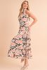 Home > Black Knotted Halter Floral Print Ruffle Tiered Maxi Dress