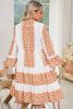 Home > Orange Boho Geometric V-Neck Frill Tiered Mini Dress