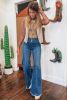 Home > Sail Blue High Waist Button Raw Hem Jeans