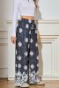 Black Bohemian Print Drawstring Waist Wide Leg Pants