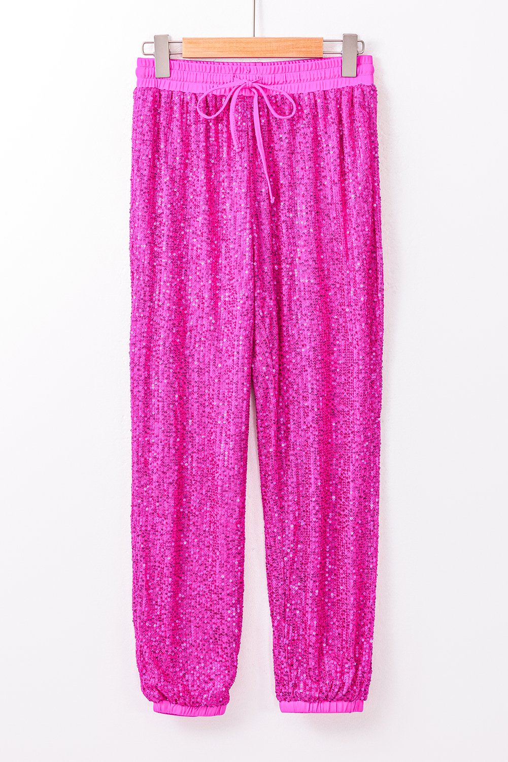 Home > Rose Sequins Tie Elastic Waist Jogger Pants