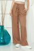 Brown Casual Drawstring Shirred Elastic Waist Wide Leg Pants