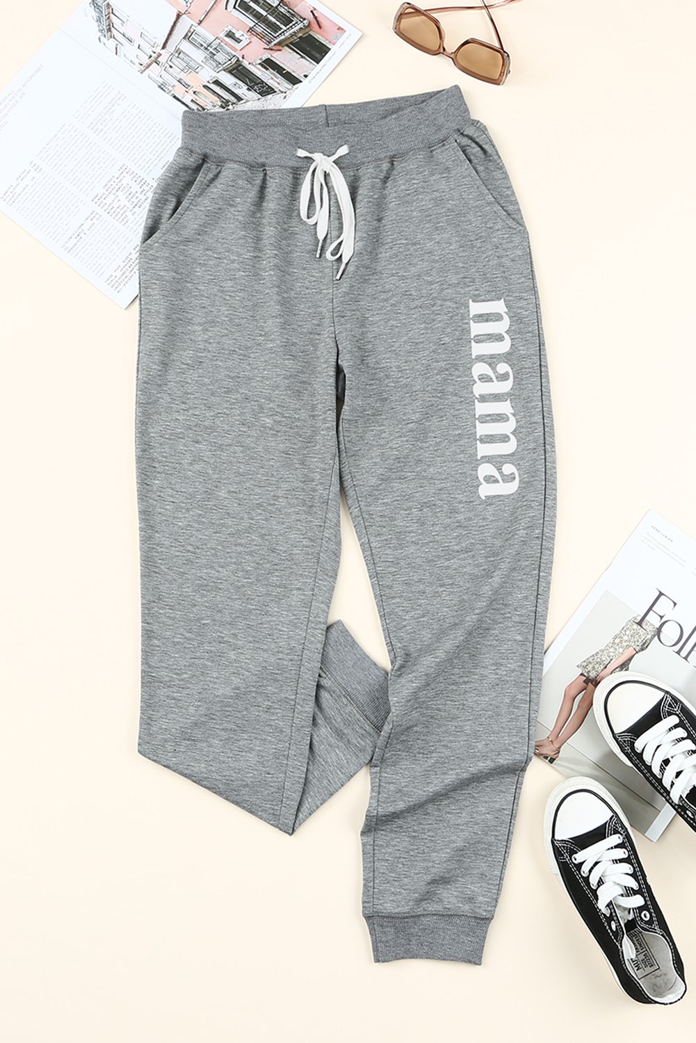 Grey Mama Letter Print Drawstring High Waisted Jogger Pants