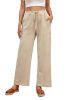 Home > Khaki Drawstring Waist Crinkled Wide Leg Pants