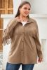 Home > Khaki Fringe Trim Plus Size Suede Shacket
