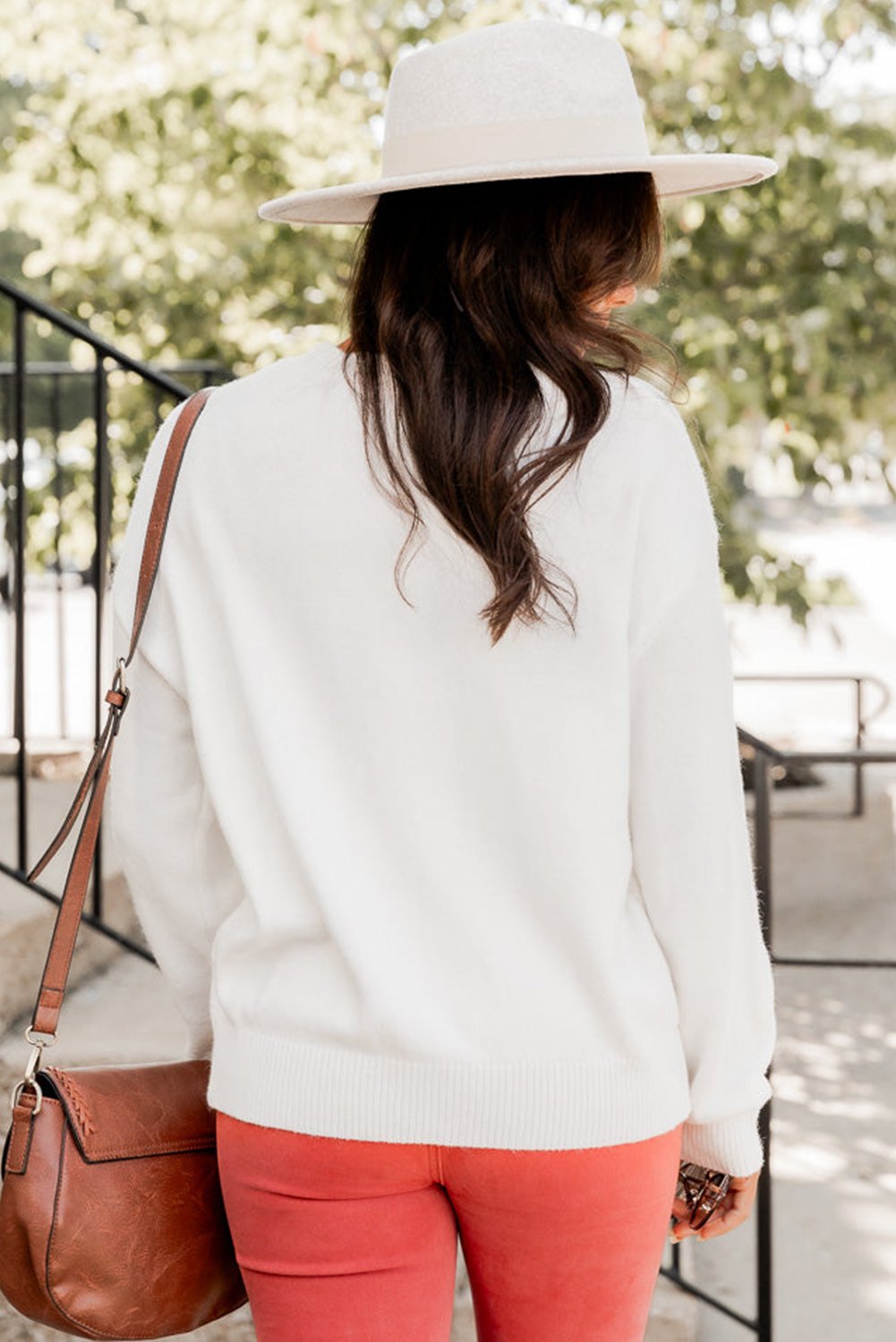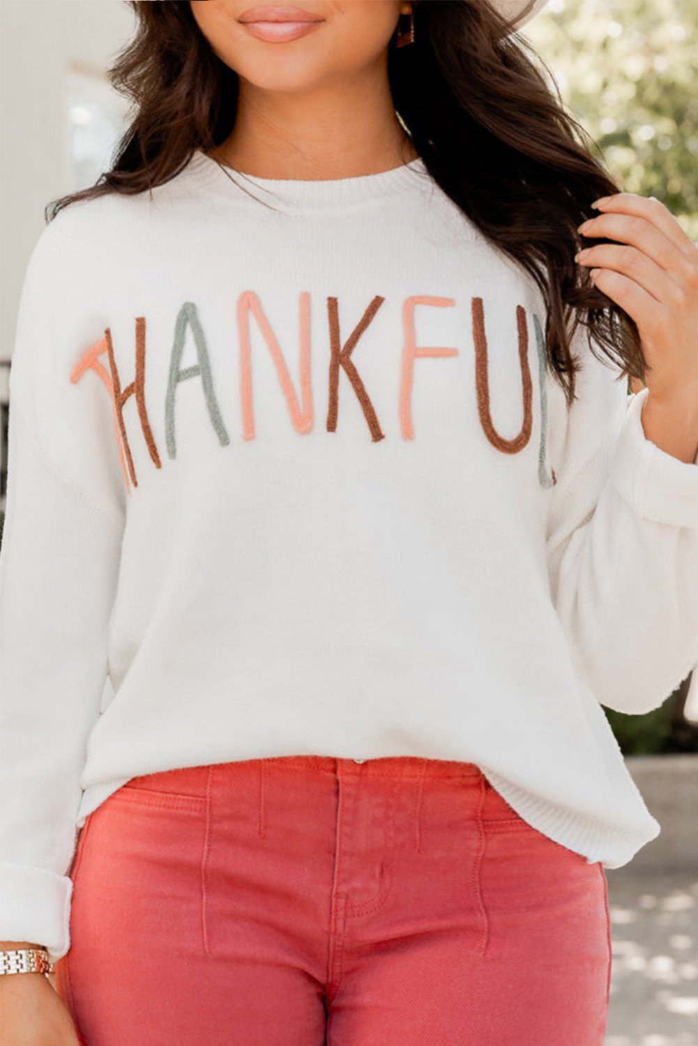 Home > White Thankful Letter Pattern Plus Size Sweater