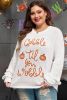 White Gobble Til You Wobble Pop Up Crochet Plus Size Sweater is a cozy choice for the holiday season, blending style and comfort effortlessly. The casual design of this sweater makes it perfect for a laid-back day out or a fun weekend gathering with friends. Featuring adorable fruit and vegetable prints along with trendy letter patterns, this sweater adds a playful touch to your outfit. Crafted with a rib-knit texture, this sweater offers a flattering fit and durability, ensuring it lasts through many wearings. Ideal for retailers looking to offer stylish plus-size options, this sweater is available for wholesale orders to stock up on fashionable winter apparel.