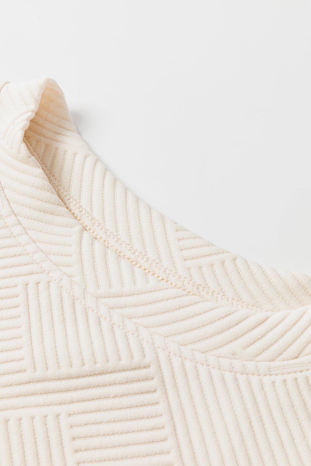 Home > White Floral Patchwork Sleeve Textured Plus Size Pullover Top