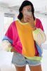 Stand out in style with our sweatshirt, blending casual comfort with trendy design elements. The eye-catching colorblock and patchwork details create a unique and fashion-forward look, perfect for adding a pop of color to your wardrobe. Enjoy the relaxed fit and drop sleeve design, ensuring both comfort and style for everyday wear or casual outings. Quality craftsmanship is evident in the exposed seam detailing, adding a touch of edge to this cozy sweatshirt. Elevate your inventory with this must-have sweatshirt available at wholesale prices, perfect for attracting fashion-forward customers looking for statement pieces.
