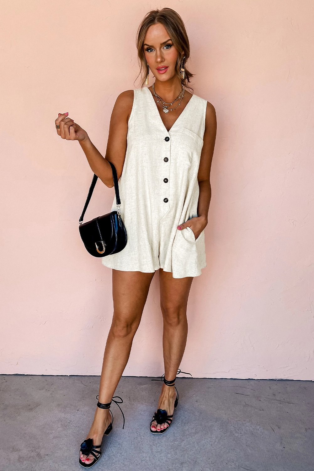 Beige V Neck Buttoned Front Chest Pocket Sleeveless Romper Beige V Neck Buttoned Front Chest Pocket Sleeveless Romper Beige V Neck Buttoned Front Chest Pocket Sleeveless Romper Beige V Neck Buttoned Front Chest Pocket Sleeveless Romper Beige V Neck Buttoned Front Chest Pocket Sleeveless Romper Beige V Neck Buttoned Front Chest Pocket Sleeveless Romper
