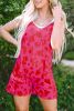 Home > Rose Red Leopard Pocketed V Neck Sleeveless Romper